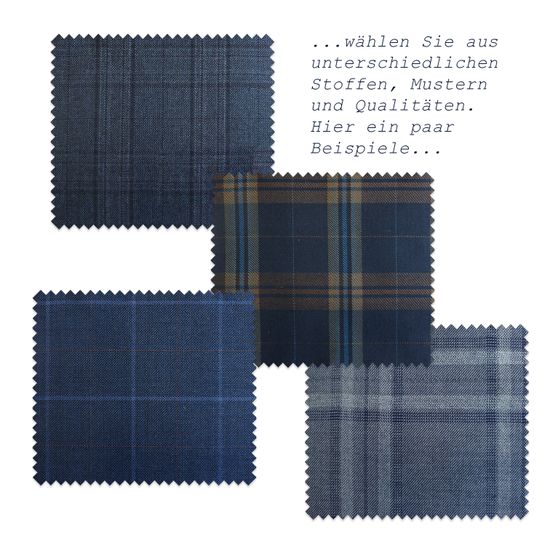 Vorder- und Rückenteil aus gleichem Material möglich, mit 2 Paspeltaschen.